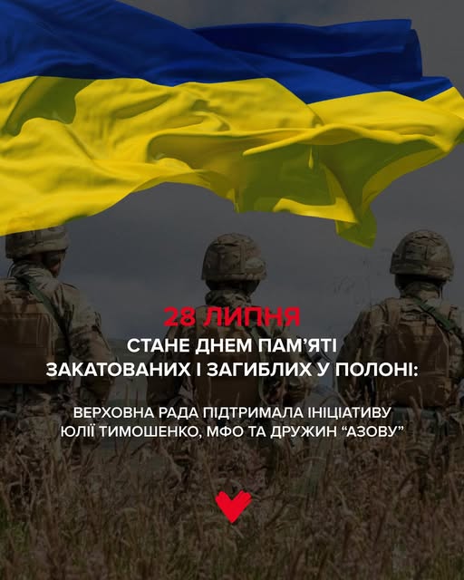 28 липня стане Днем памʼяті закатованих і загиблих у полоні: Верховна Рада підтримала ініціативу Юлії Тимошенко, МФО та дружин «Азову».
