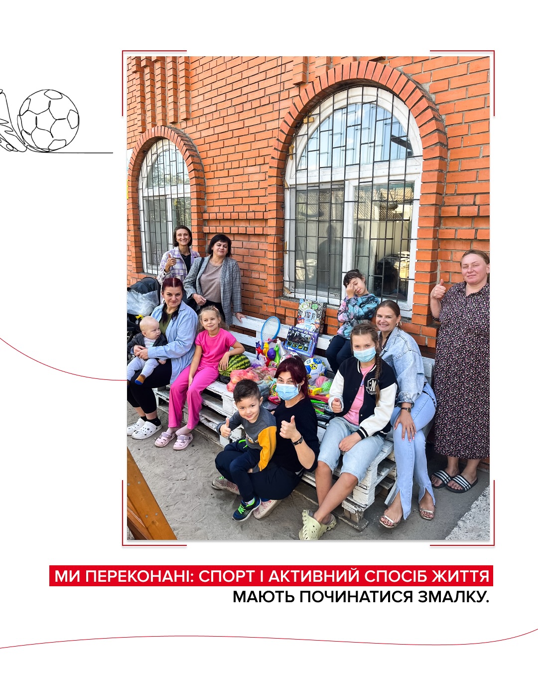 Ми переконані: спорт і активний спосіб життя мають починатися змалку. Тому цього дня привезли малечі спортивний інвентар. Бо саме через спорт вони вчаться командній роботі, зміцнюють здоров’я та заряджаються позитивними емоціями.