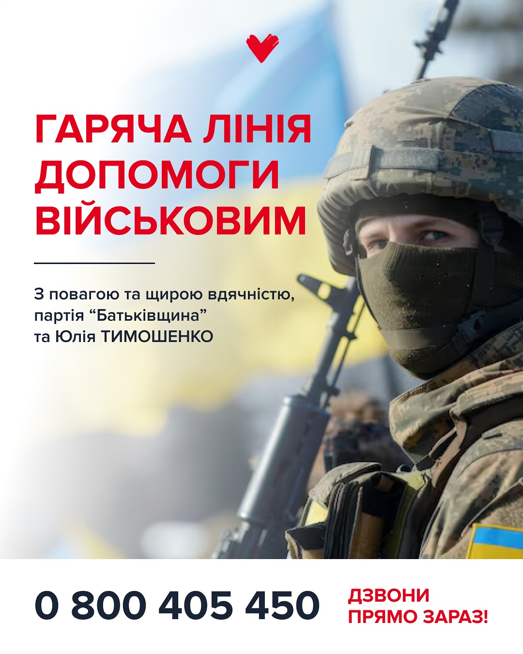 Гаряча лінія допомоги військовим від партії «Батьківщина» та Юлії Тимошенко — це підтримка, яку можна отримати вже сьогодні.